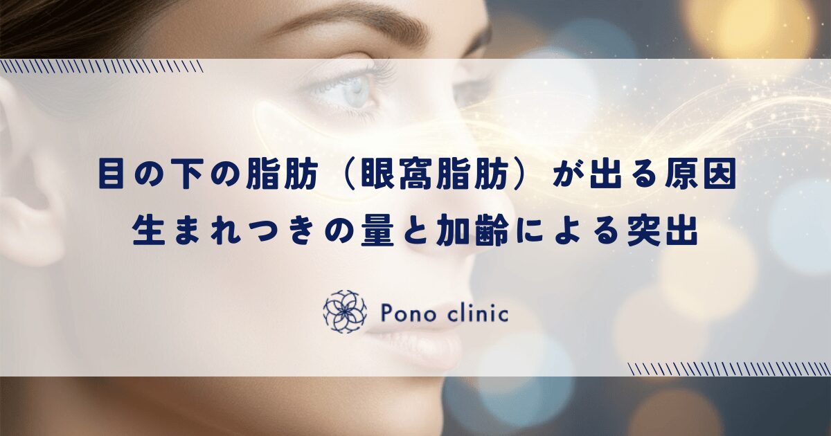 目の下の膨らみやクマの原因となる眼窩脂肪は、加齢による眼輪筋の衰えや生まれつきの骨格構造が大きく関係します。