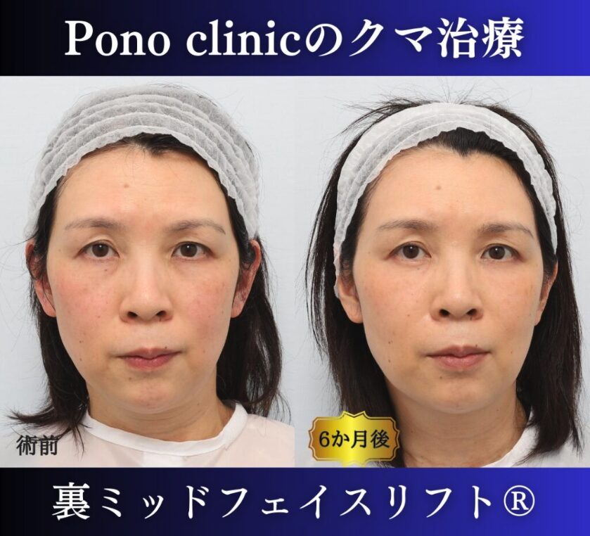 リスク/副作用:腫れ・内出血・左右差・違和感・イメージとの違いなどを生じる事があります。 費用:裏ミッドフェイスリフト®750,000円、サポーター糸110,000円、麻酔代50,000円、術後漢方セット18,000円(施術当時) -